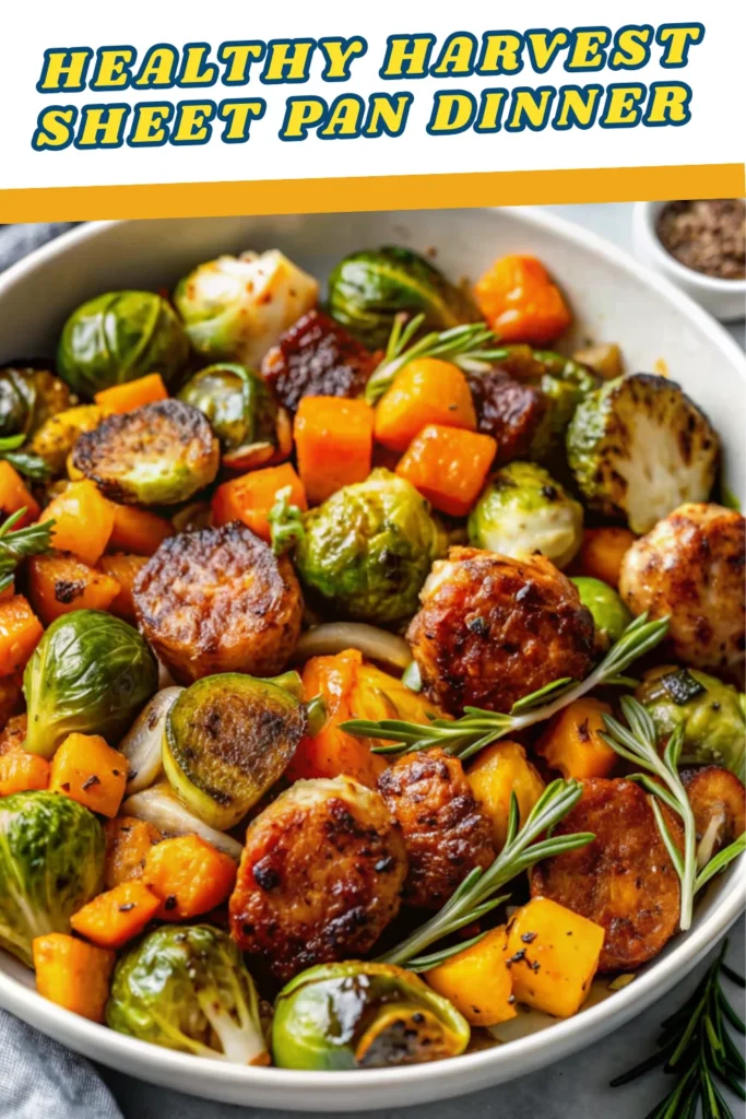 Keywords: harvest sheet pan dinner, sheet pan recipe, fall dinner recipe, sausage sheet pan, roasted vegetables
