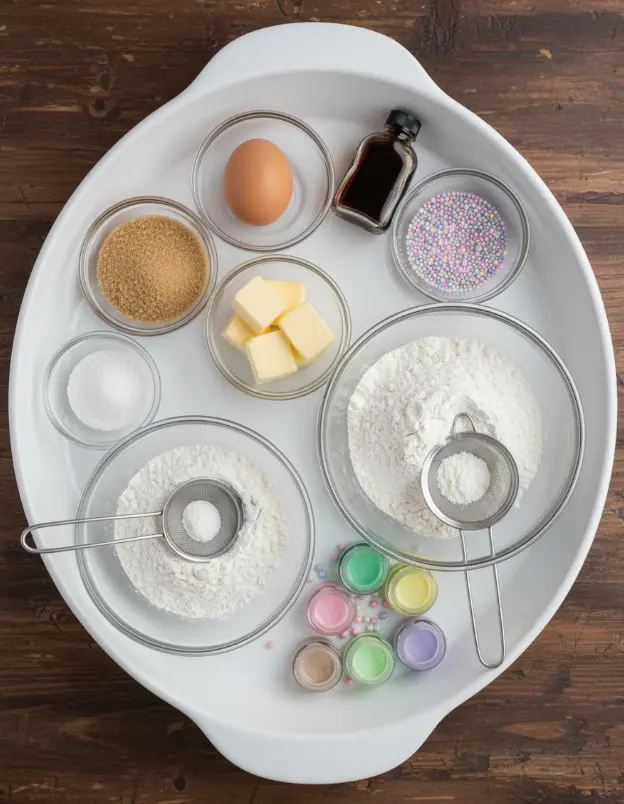 Creating Baby in Bloom Cookies starts with high-quality, simple ingredients that come together for a buttery, tender base. I’ve organized this list for clarity, including sensory notes to get your mouth watering—think the creamy richness of softened butter mingling with the sweet aroma of vanilla. Plus, I’ve added substitution suggestions to make this recipe adaptable for dietary tweaks or pantry staples.