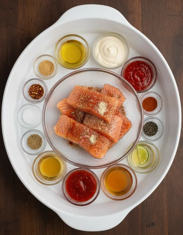 Creating Bang Bang Salmon Bites starts with fresh, high-quality ingredients that tantalize the senses—think succulent salmon with a spicy kick and creamy finish. This recipe serves 4 as an appetizer or 2 as a main, drawing from popular easy salmon recipes that emphasize minimalism and bold taste. Here’s what you’ll need: