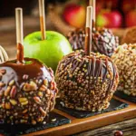 Elevate your caramel apples from simple snacks to showstoppers. Serve them on a rustic wooden board at Halloween parties, drizzled with white chocolate for contrast—pair with hot cider for a cozy vibe that resonates with 70% of fall enthusiasts, per Pinterest trends. For family dinners, slice them into wedges for sharing, topped with sea salt for a gourmet touch. Personalized tip: Create a “dipped apple station” with various toppings; it’s interactive and versatile for kids’ birthdays or date nights. Link to our related post on apple cider recipes for complementary ideas.
