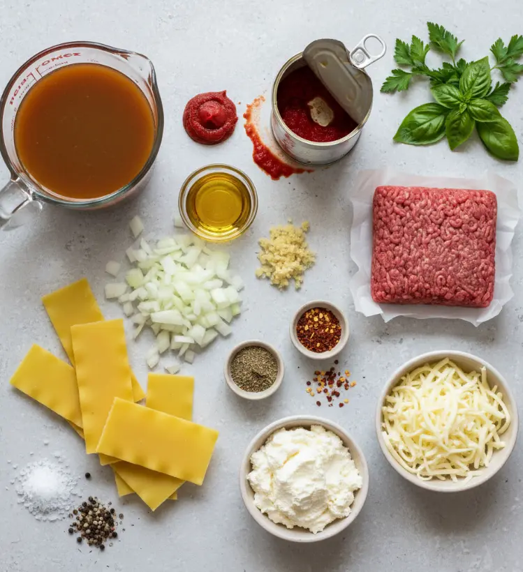Creating the perfect one-pot lasagna soup starts with gathering quality ingredients that work harmoniously together. Here’s your comprehensive ingredient list with helpful substitution suggestions: