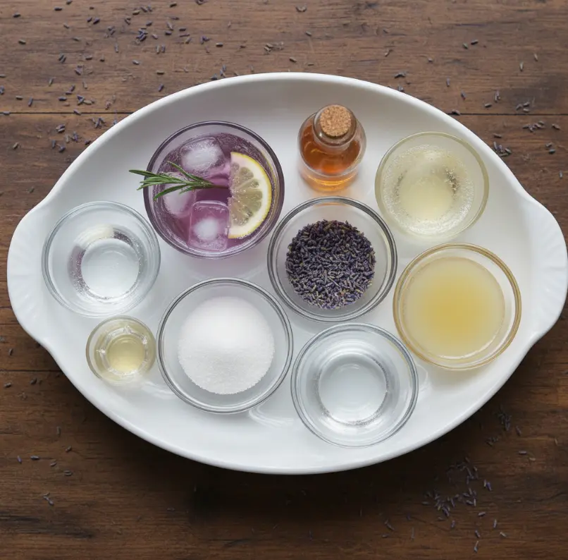 - Garnish: Fresh lavender sprig and a thin lemon slice