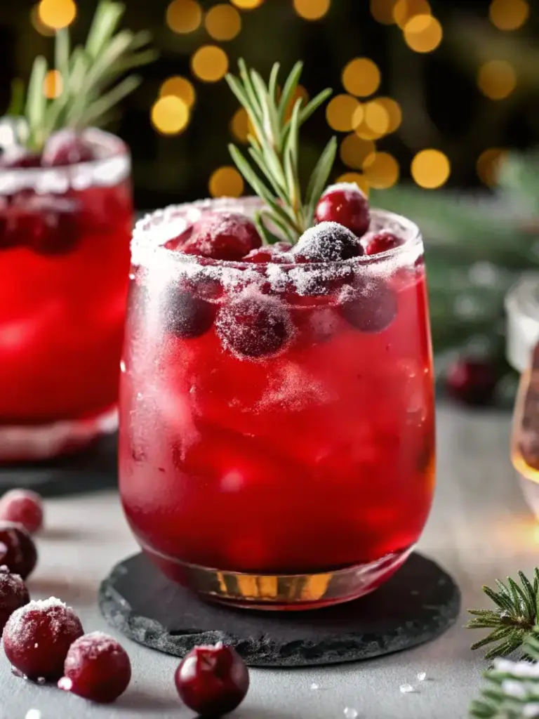 - Garnish with fresh cranberries and rosemary sprigs.