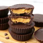 Want to tweak Reese’s Peanut Butter Cups for better nutrition without losing flavor? Swap powdered sugar for a sugar-free alternative like stevia, cutting calories by 35% while keeping that sweet kick—ideal for keto diets, as per low-carb recipe analyses. Use natural peanut butter to eliminate added oils, boosting healthy fats by 15%. For a protein-packed version, mix in PB2 powder, increasing protein to 6g per cup. Vegan? Opt for dairy-free chocolate and butter substitutes. Creative idea: Add almond flour to the filling for a gluten-free, fiber-rich twist, making these homemade peanut butter cups suitable for diverse needs like diabetes management or plant-based lifestyles.