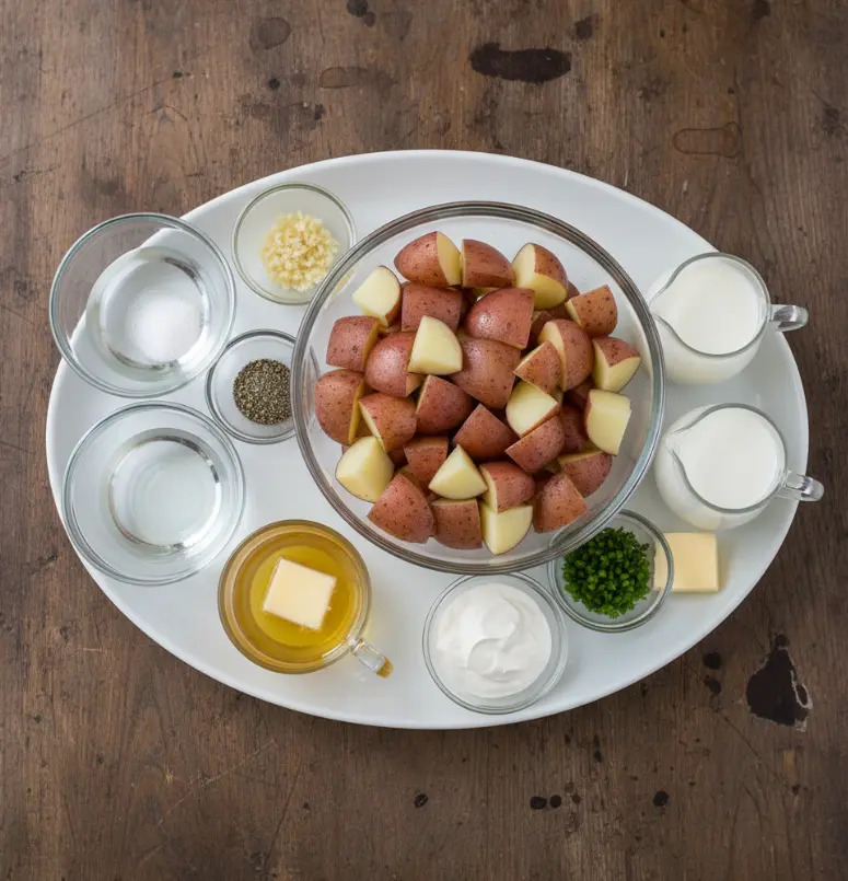 • 4 lbs red potatoes, cleaned and rinsed (keep those nutrient-rich skins on for rustic charm, or peel for silky smoothness)