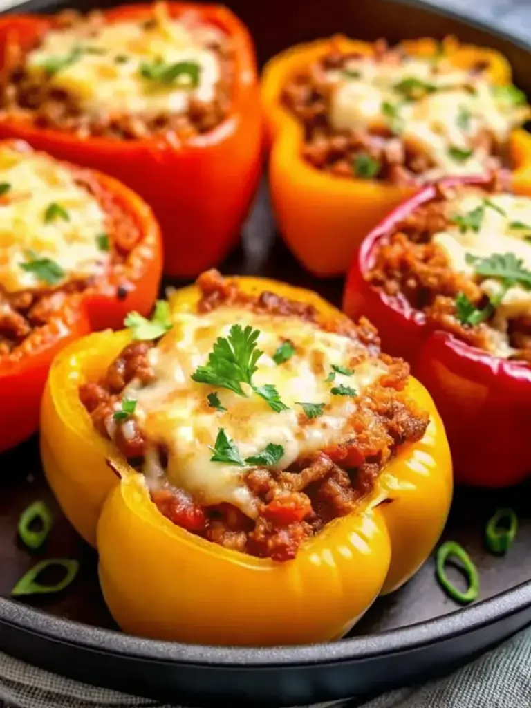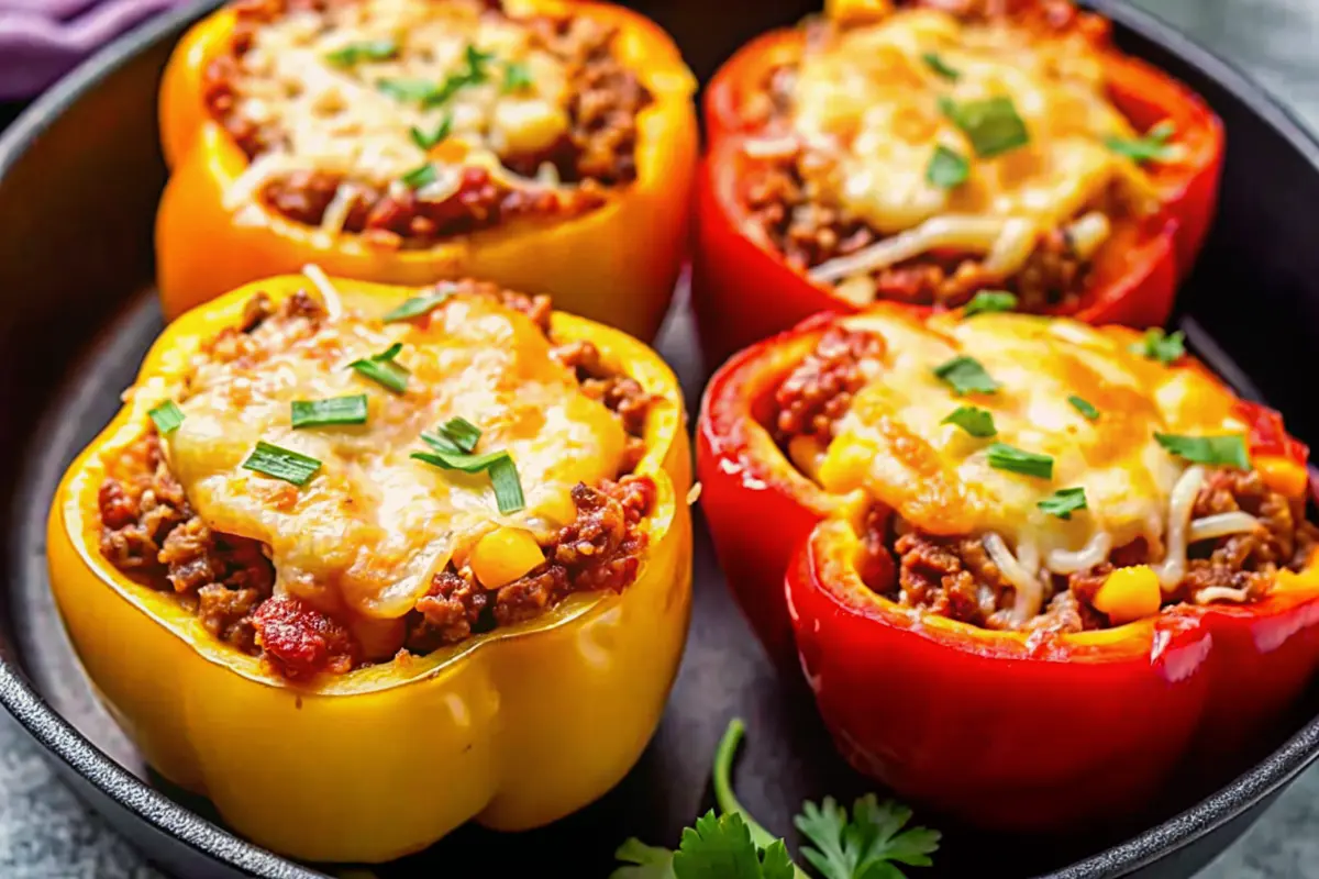 Ces Beef Stuffed Bell Peppers sont un plat réconfortant et équilibré, garnis de bœuf savoureux, de tomates et d’herbes, puis cuits au four jusqu’à tendreté parfaite.