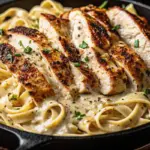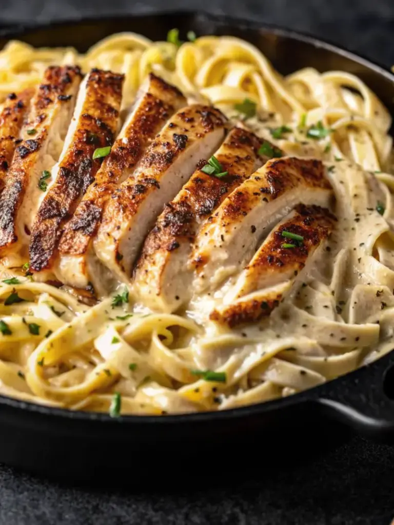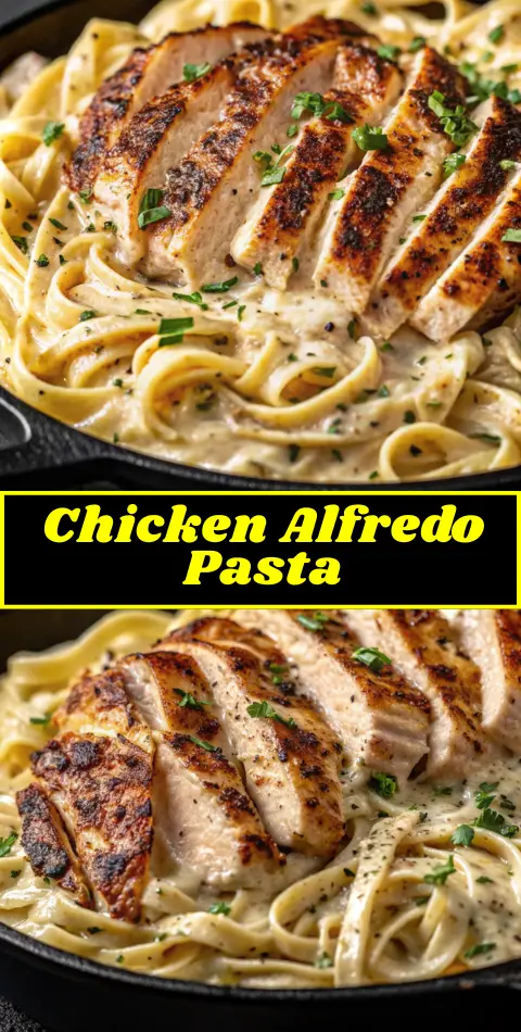 A classic Chicken Alfredo made with golden seared chicken, silky Parmesan cream sauce, and perfectly cooked fettuccine for the ultimate comfort food dinner.