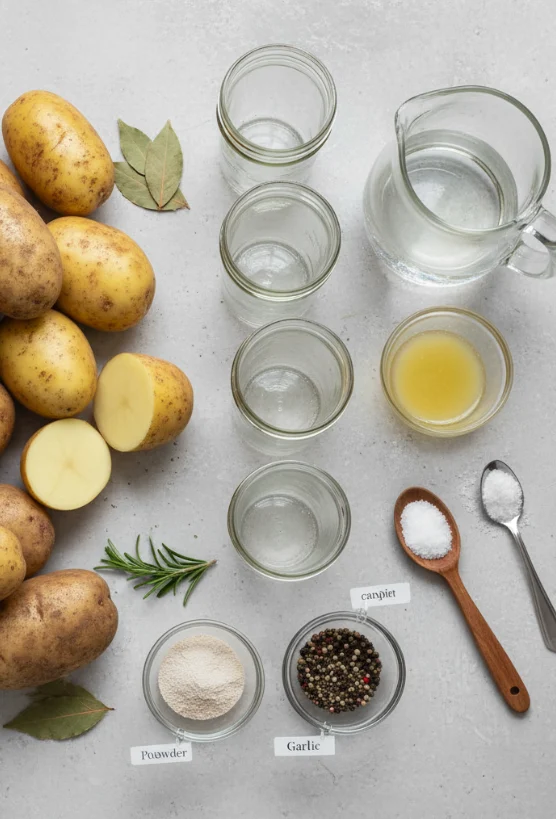 • 10 pounds Potatoes – Medium to large-sized, preferably starchy varieties like Russets or Yukon Golds. These varieties hold their shape better during the canning process and provide that classic potato texture we all love.