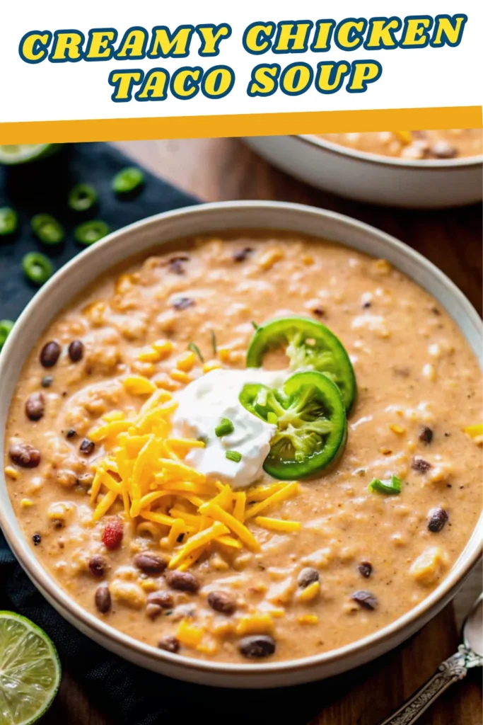 Keywords: chicken taco soup, creamy soup recipe, comfort food, weeknight dinner