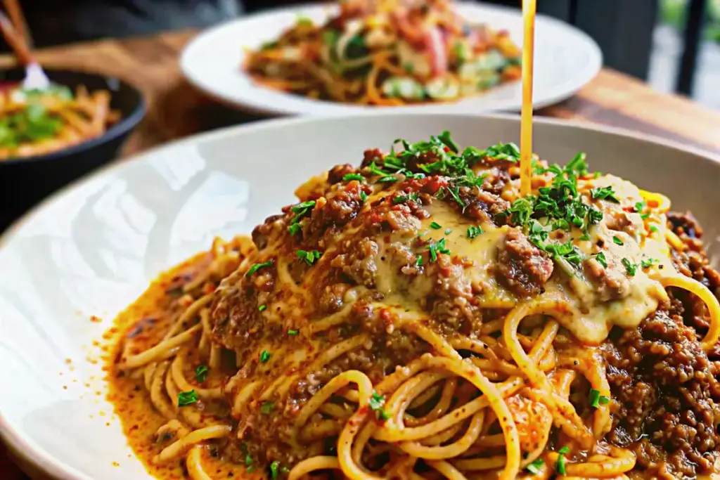 Easy Cajun Beef Spaghetti in Creamy Three
