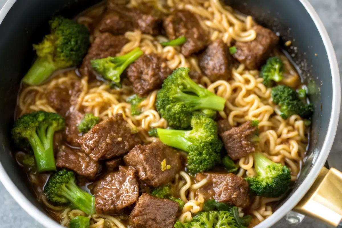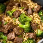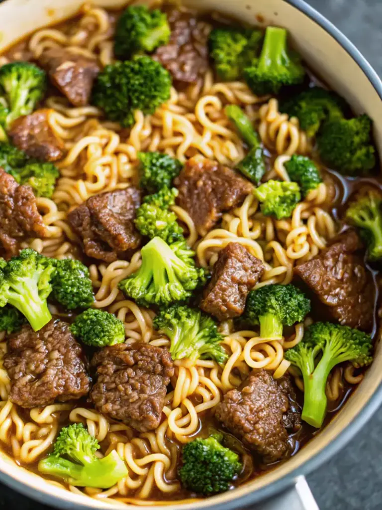 A quick and flavorful 30-minute Asian-inspired beef and broccoli ramen dish that combines tender beef, vibrant broccoli, and chewy noodles in a rich, umami-packed sauce.
