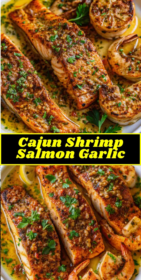 Keywords: cajun shrimp salmon garlic, cajun salmon recipe, creamy garlic shrimp, spicy seafood dinner