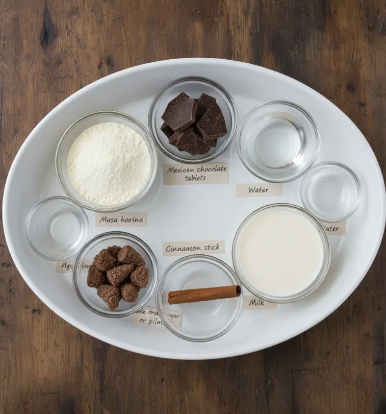 - ¼ cup Masa harina – The heart of Champurrado, this nixtamalized corn flour creates the signature thick, creamy texture. This process makes dried corn easier to work with and more nutritious for humans because it releases amino acids that transform the corn into a complete protein. If unavailable, cornmeal can substitute but expect a slightly different texture.