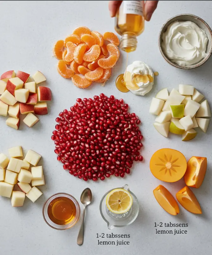 Can’t find Asian pears? Bartlett pears work beautifully. No persimmons available? Substitute with kiwi or additional pomegranate arils for color. Prefer less tartness? Use Fuji apples instead of Honeycrisp for sweeter notes.