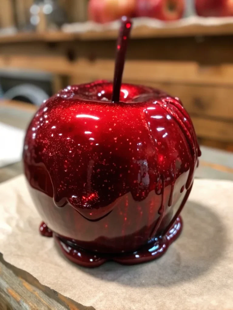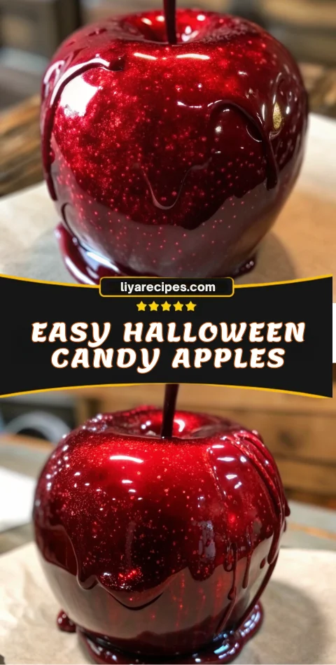 Keywords: Halloween candy apples, spooky desserts, glossy candy apples, homemade Halloween treats, hard crack candy coating