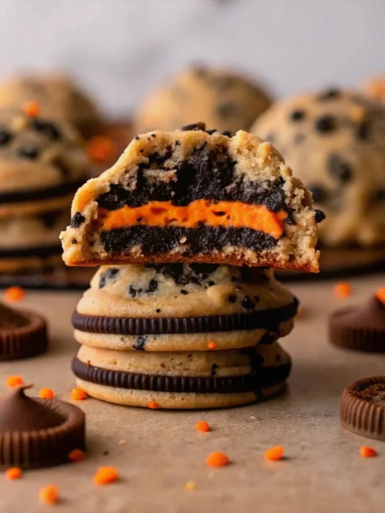 These Easy Halloween Oreo Stuffed Chocolate Chip Cookies combine chewy chocolate chip cookie dough with a surprise Oreo center and festive sprinkles. Perfect for Halloween parties, trick-or-treat gifts, or cozy fall baking, these spooktacular cookies are easy to make and guaranteed crowd-pleasers.