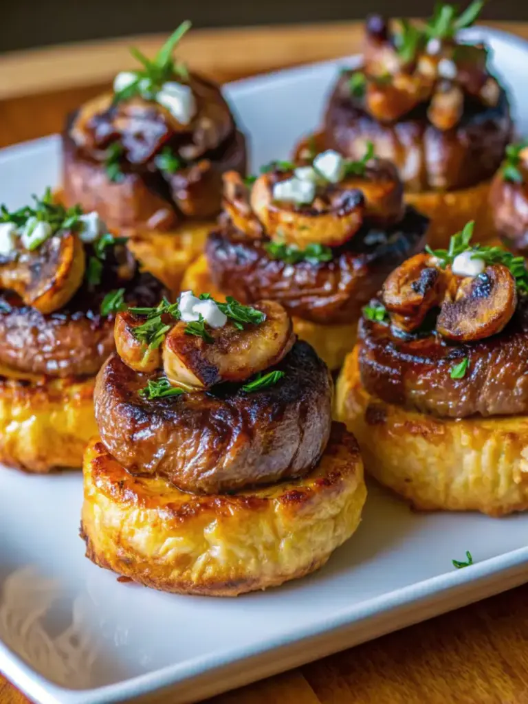 Remove from the oven and let cool for 2-3 minutes before serving. These elegant appetizers are best enjoyed warm, allowing the contrast between the flaky pastry, tender beef, and earthy mushroom filling to shine. Arrange on a beautiful serving platter and watch your guests marvel at your entertaining prowess.