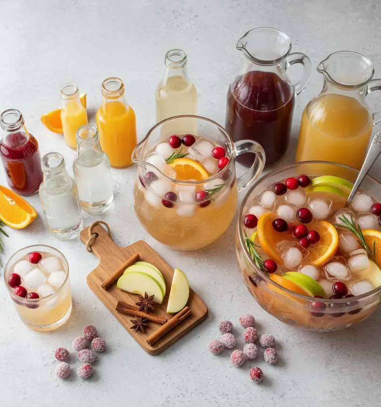 The foundation of any exceptional holiday punch recipe starts with quality ingredients. The magic of non-alcoholic holiday punch comes from layering complementary flavors—tartness, sweetness, brightness, and fizz all working in harmony.