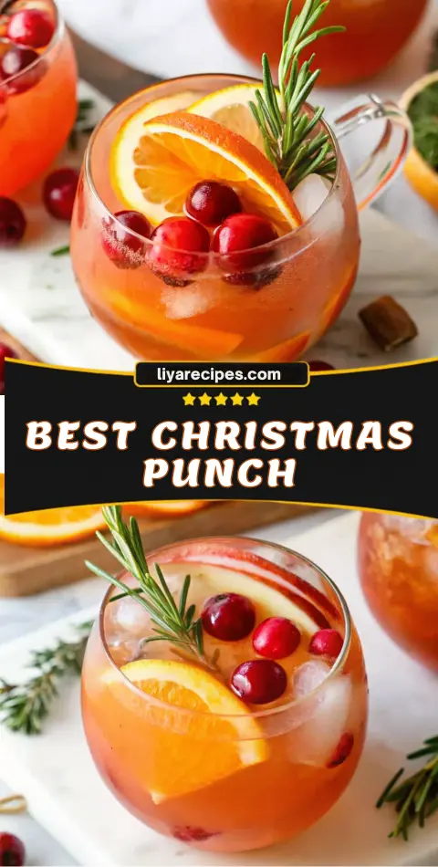 Keywords: non-alcoholic holiday punch, holiday drinks, Christmas mocktail, festive punch, easy punch recipe, family-friendly beverage