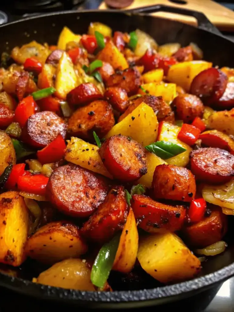 This One Pan Kielbasa and Potatoes is the ultimate 30-minute comfort food—smoky sausage, crispy potatoes, and colorful vegetables roasted together for a hearty, family-friendly meal with minimal cleanup.