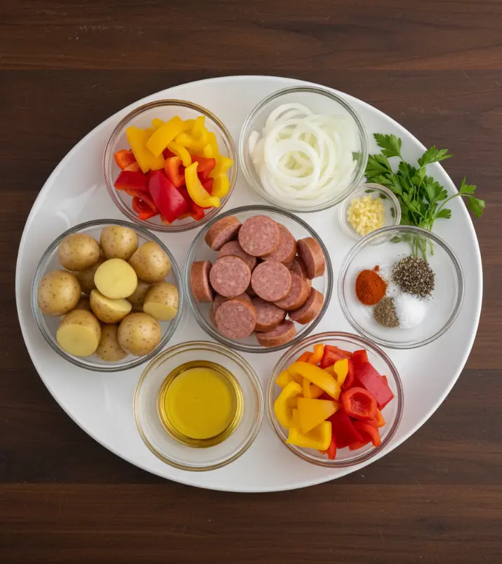 Substitution Suggestions: Swap baby potatoes for Yukon Gold or Russet potatoes cut into 1-inch pieces, replace bell peppers with seasonal vegetables like zucchini or Brussels sprouts, or substitute turkey kielbasa for a leaner option.