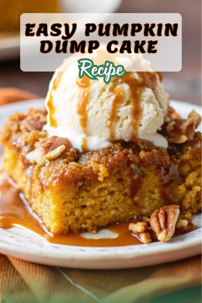 Keywords: pumpkin dump cake, easy pumpkin dessert, fall cake recipe, Thanksgiving dessert, spiced pumpkin cake
