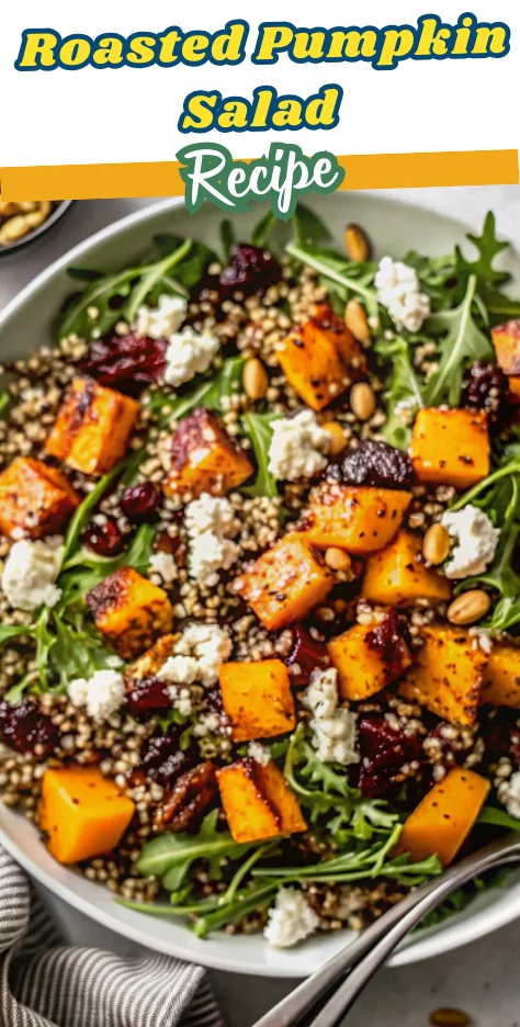 Keywords: roasted pumpkin salad, quinoa salad, healthy fall recipes, pumpkin feta salad