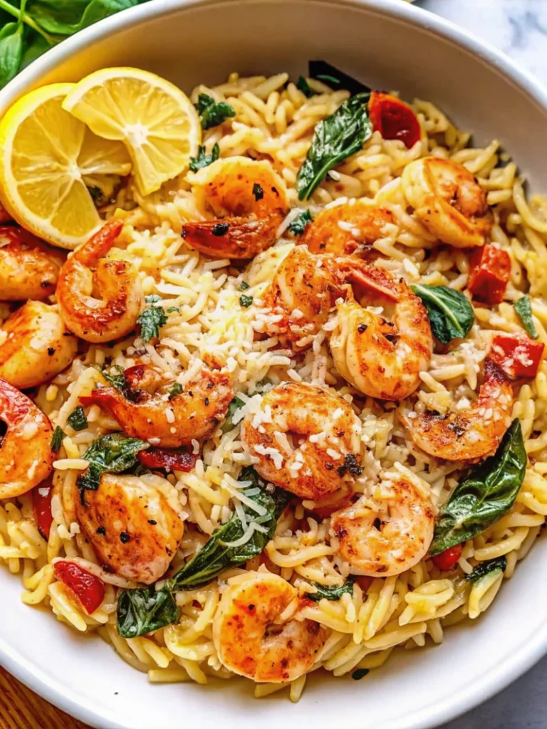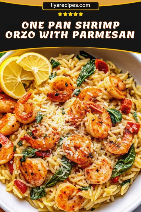 This one-pan Parmesan orzo with shrimp is a 25-minute Mediterranean-inspired weeknight dinner that combines juicy shrimp, creamy Parmesan orzo, and fresh spinach in one skillet for a quick, flavorful, and balanced meal.