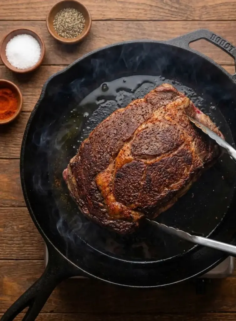 - Heat olive oil in a skillet over medium-high heat and sear the roast for 2–3 minutes per side until browned.