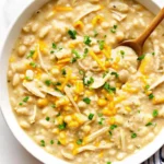 This creamy white chicken chili recipe delivers all the comfort of traditional chili in just 30 minutes. Packed with tender chicken, beans, corn, and spices, it’s the perfect quick and hearty meal for busy weeknights.