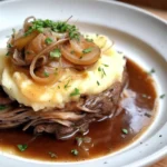 This French Onion Brisket recipe transforms traditional brisket by borrowing flavors from French onion soup. Slowly caramelized onions, red wine, and herbs create a deeply savory braising liquid that results in fork-tender, flavorful meat perfect for family dinners or special occasions.