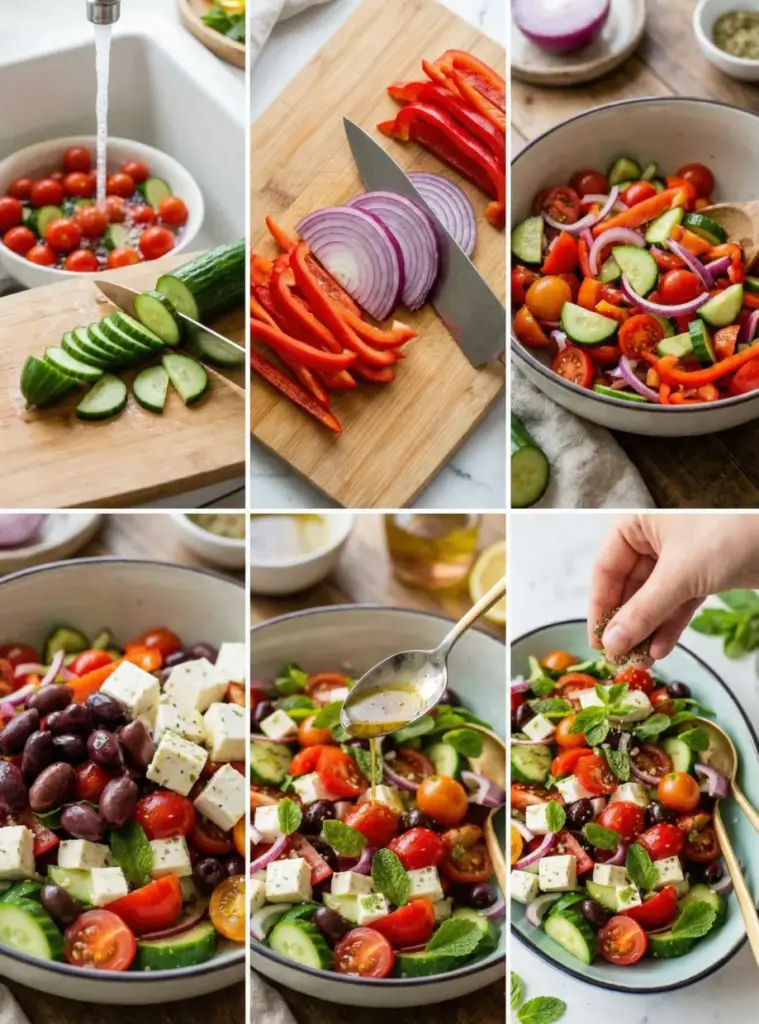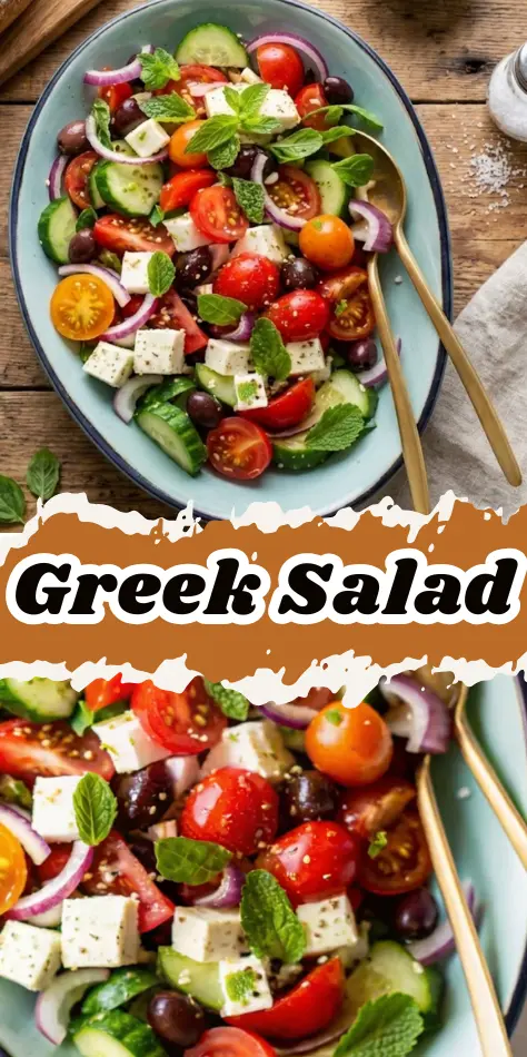 Keywords: Greek salad, fresh salad recipes, Mediterranean diet, vegetarian salad, feta cheese, Kalamata olives, no-cook recipes, healthy salad, low-carb