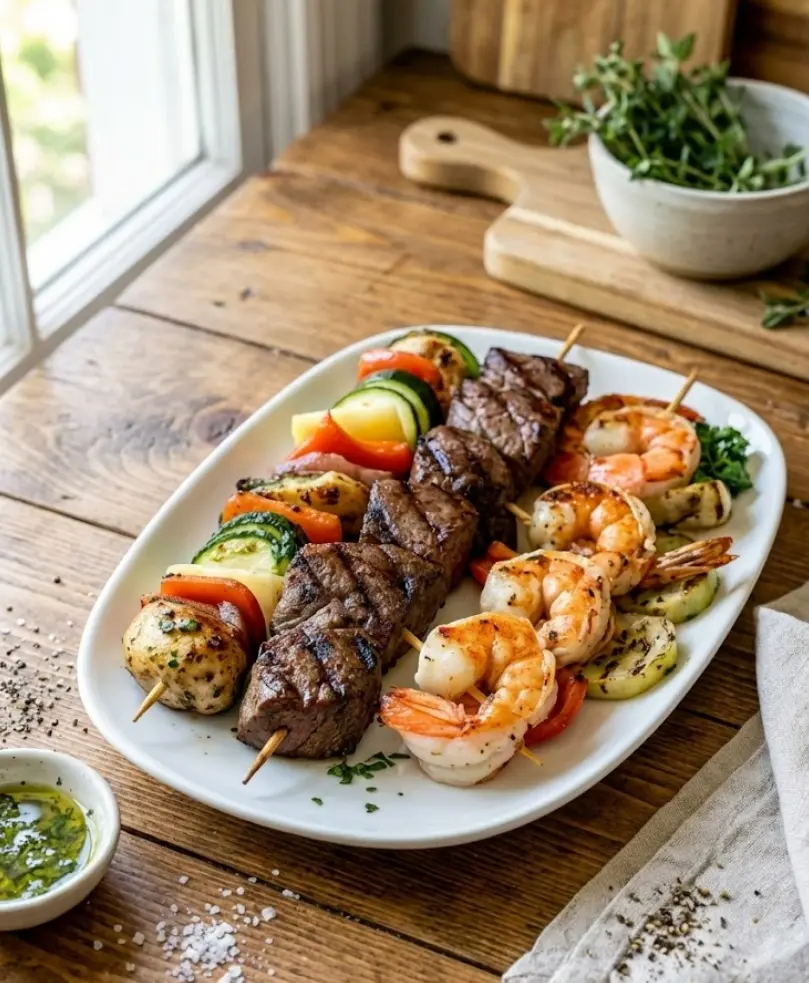 Grilled Steak & Shrimp Kabobs offer a perfect balance of tender steak and succulent shrimp, all enhanced with vibrant vegetables and a flavorful marinade. This easy-to-make recipe is perfect for any BBQ or family dinner, providing a tasty and nutritious meal that’s sure to impress.