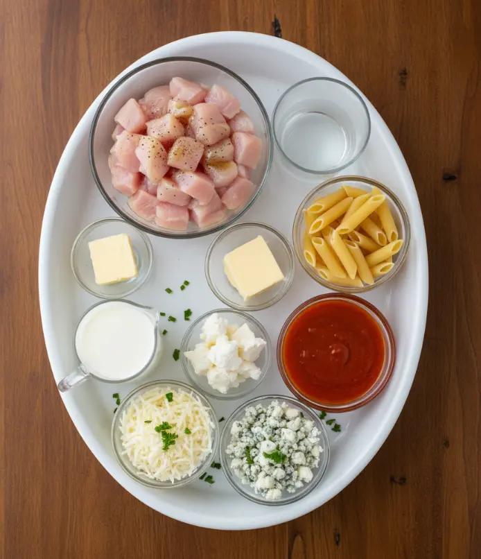 Transform your kitchen into a comfort food haven with these carefully selected ingredients for the perfect Buffalo Chicken Alfredo: