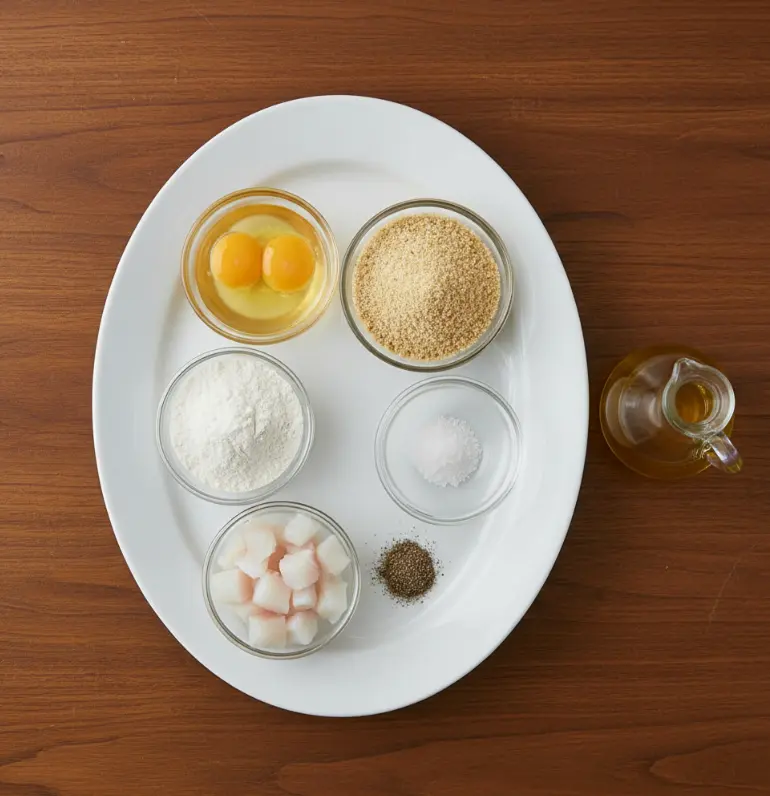 • 500g white fish fillets (Cod, haddock, or tilapia works best – these varieties provide the perfect texture and mild flavor that doesn’t overpower the coating)