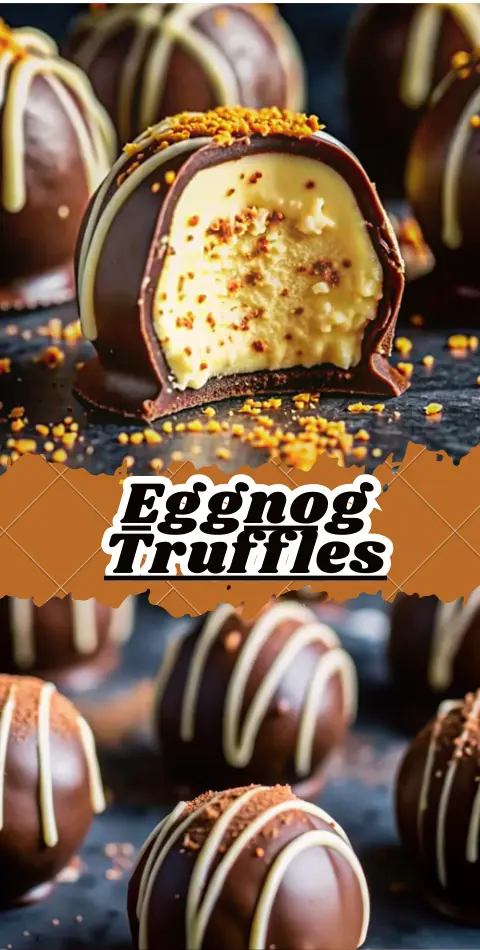 Eggnog Truffles are creamy, no-bake holiday treats made with white chocolate, cream cheese, eggnog, and warm spices, then coated in rich dark chocolate. These festive truffles capture the flavor of classic eggnog in an elegant bite-sized dessert perfect for gifting and entertaining.