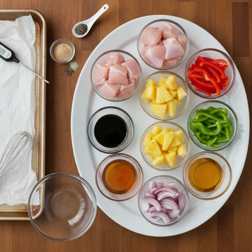 - Roast for 20–25 minutes, until chicken reaches 165°F and pineapple caramelizes.