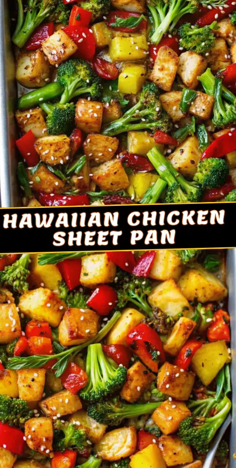 Keywords: Hawaiian Chicken Sheet Pan, pineapple chicken, one pan dinner, sheet pan recipe, easy family meals