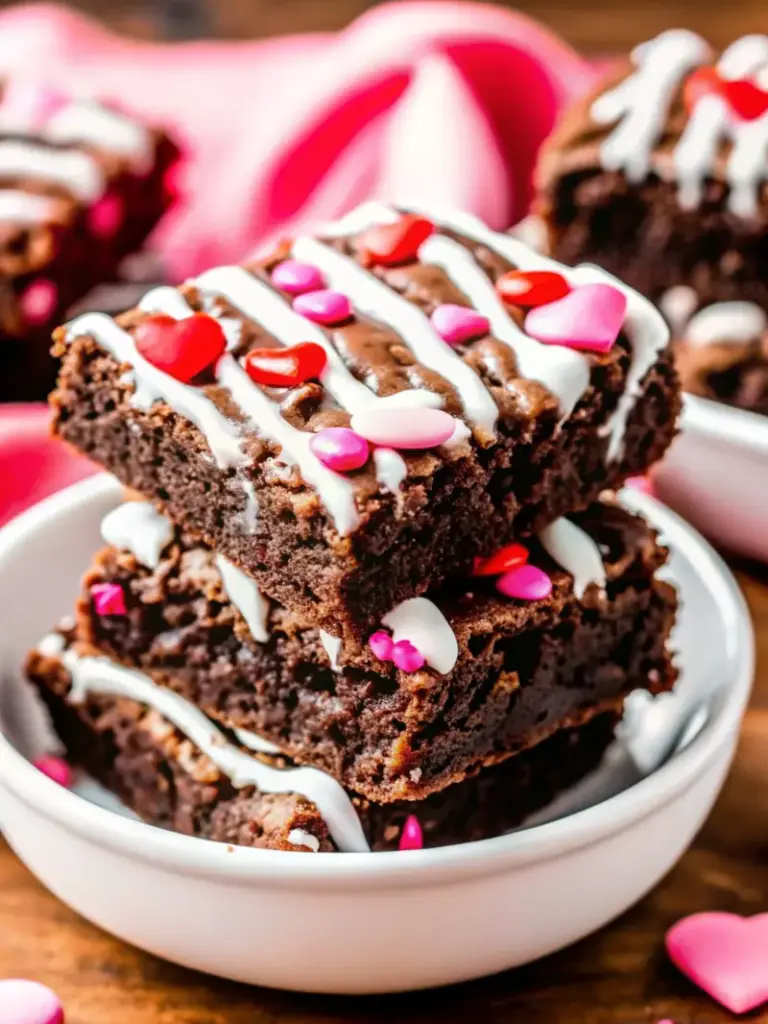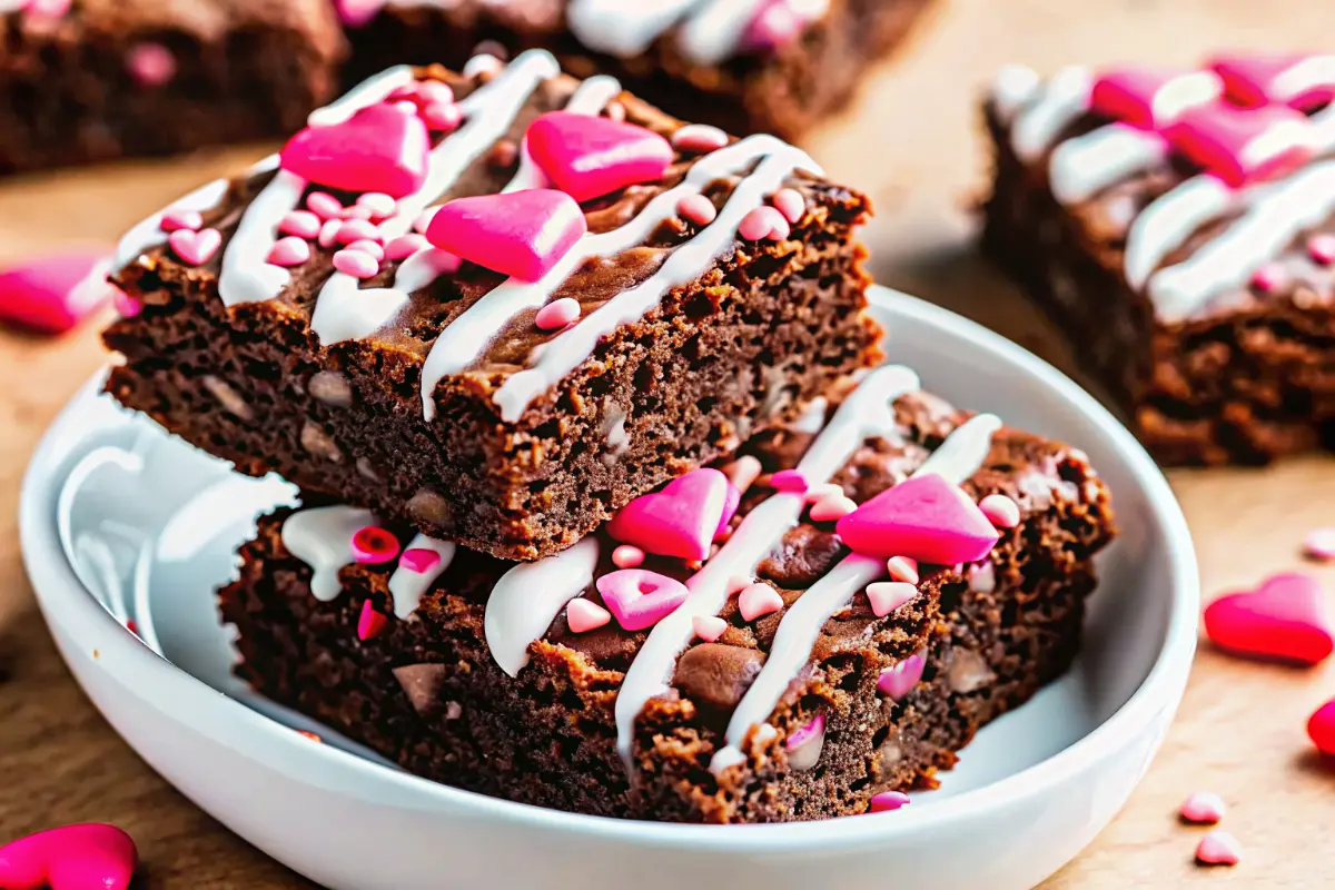 Decadent, fudgy Valentine Brownies crafted for 2025—rich chocolate flavor, glossy topping, and festive decorations perfect for romantic celebrations or Galentine’s gatherings.