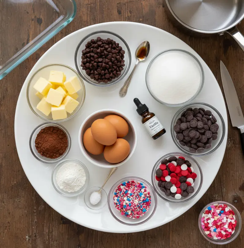 Transform your kitchen into a romantic bakery with these carefully selected ingredients that create the ultimate Valentine Brownies experience: