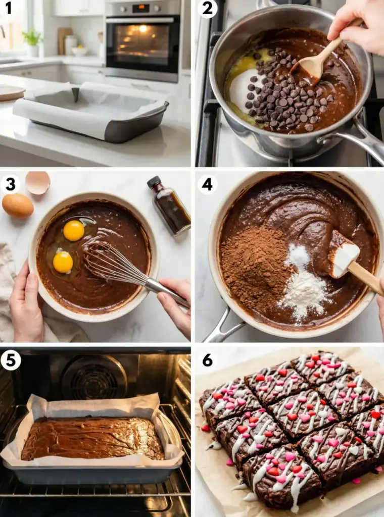 Preheat your oven to 350°F and line a 13×9-inch baking dish with parchment paper, leaving overhang for easy removal. This professional technique ensures your Valentine Brownies release perfectly without sticking, creating clean, Instagram-worthy squares.