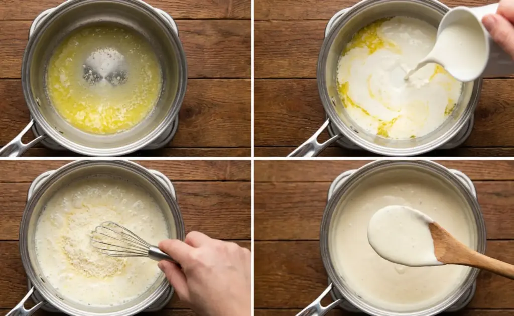 • Incorporate cheese: Slowly stir in the Parmesan cheese, whisking until melted and smooth.