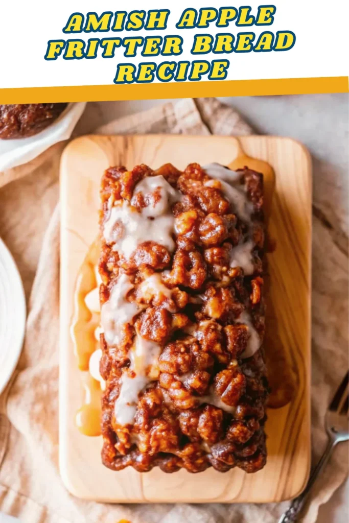 A traditional Amish-style apple fritter bread filled with cinnamon-spiced apples, tender buttery crumb, and finished with a sweet vanilla glaze. A simple, cozy quick bread that brings bakery-quality comfort right to your kitchen.