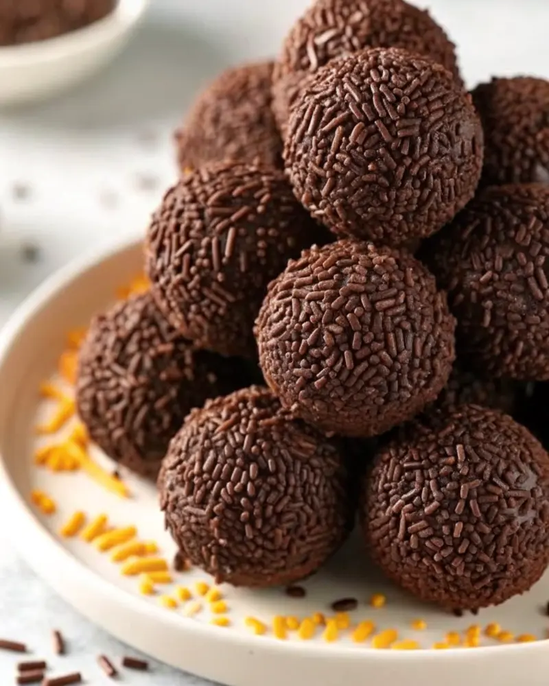 - Roll truffles in chocolate sprinkles to coat evenly.