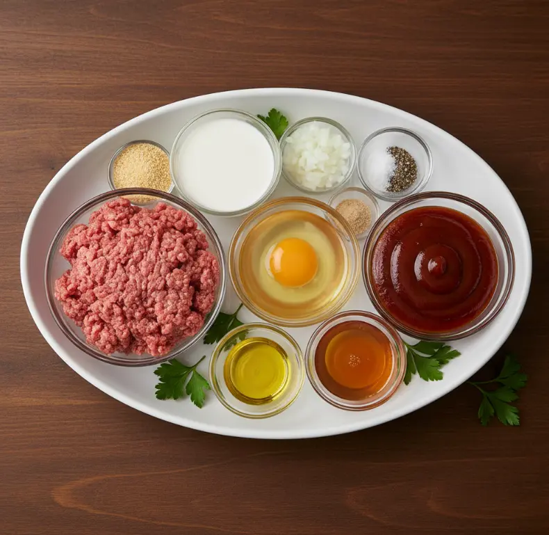 - In a large bowl, combine ground beef, breadcrumbs, milk, egg, salt, pepper, onion, and garlic powder.