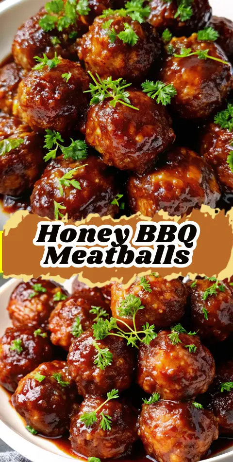 Honey BBQ Meatballs are tender, juicy meatballs baked until golden and coated in a sweet, smoky honey barbecue sauce, making them the ultimate crowd-pleasing appetizer or easy dinner.