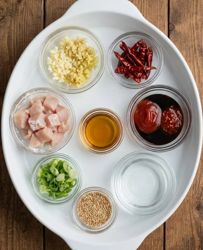 - Heat sesame oil in a skillet and sauté garlic, ginger, and dried chilies until fragrant.