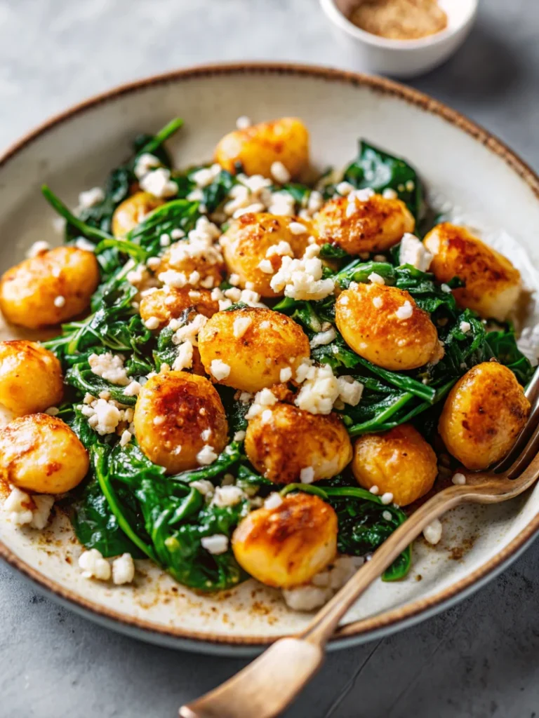 Golden, crispy gnocchi tossed with fresh spinach and creamy feta — a 15-minute Mediterranean comfort food masterpiece perfect for busy weeknights.