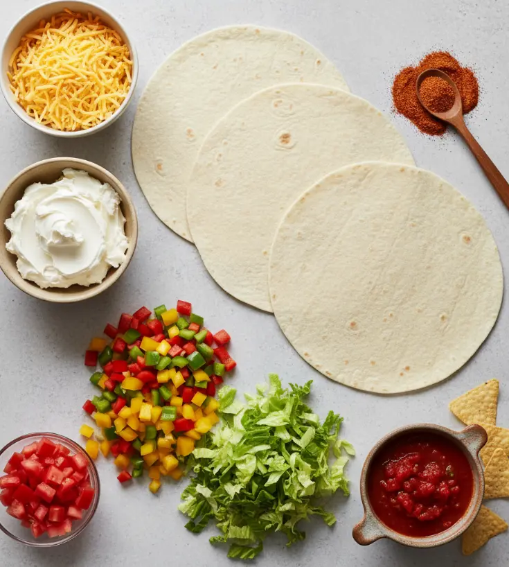 Creating the perfect cheesy taco pinwheels starts with selecting quality ingredients that work together harmoniously. Here’s everything you’ll need: