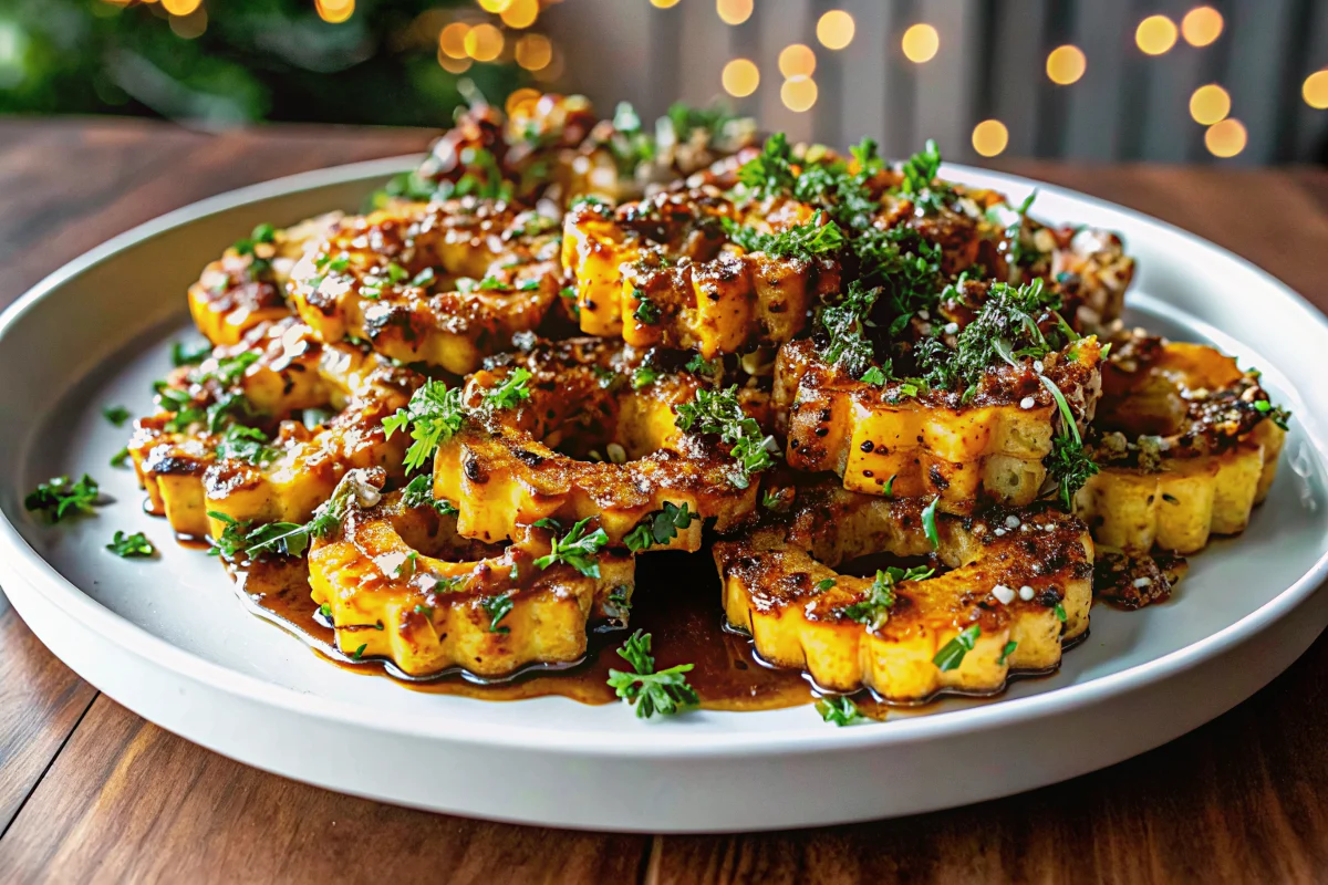This maple roasted delicata squash recipe transforms a humble winter squash into a sweet and savory side dish with caramelized edges, warm spices, and a glossy maple glaze. Easy to prepare, nutrient-rich, and beautifully golden, it’s the perfect seasonal dish for any table.
